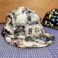 The headband of the hat is handmade to be lightweight/low-profile, with the size easily adjusted using the sliding toggle at the back. The peak is a perfect-middle, between silly cycling cap & yr average baseball cap, typically with a hi-vis upper; to keep you seen, when out on the bike. The front tags of the 5PbyB3 is also usually printed onto reflective fabric for an extra touch of visibility in the evenings.